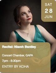 Our first-year cohort will present their first solo recitals as TANZOS artists. All recitals will take place at 7pm in the Gallagher Academy of Performing Arts Concert Chamber – entry by koha.